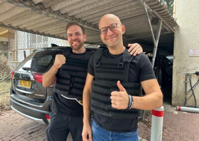 Eine der Geschichten, die wir hörten, stammen von Moran und ihren beiden Söhnen. Sie sind aus der Stadt Sderot, die von den Aktionen der Hamas betroffen war. Moran zeigte mir ein Video von Personen, die auf ihr Haus zusteuerten. Sie sagte, dass sie die Schrecken immer noch nicht fassen könne, weil sie aus erster Hand miterlebt habe, was in ihrer eigenen Nachbarschaft geschah. Moran sagte, sie habe sich wie Anne Frank gefühlt, als sie sich stundenlang in ihrem Haus versteckte und betete, dass sie nicht entdeckt würden und ihnen nichts passiere. Ihr ältester Sohn, der 9 Jahre alt ist, war so traumatisiert, dass er aufhörte zu sprechen. Ihr standen die Tränen in den Augen, als ich ihr sagte, dass viele Christen weltweit für Israel und das jüdische Volk beten und es unterstützen.