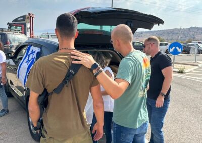 Als wir uns der Grenze näherten, wurde die Atmosphäre immer angespannter. Die Soldaten, viele von ihnen sehr jung, hatten ernste Gesichter. Wir sahen zahlreiche Panzer und Polizisten in Kampffahrzeugen. Als wir den vorgesehenen Ort erreichten, wurden wir mit einem Offizier verbunden. Soldaten aus den Stützpunkten kamen heraus, um die Gegenstände abzuholen. Sie waren sehr erfreut, und wir übermittelten, dass christliche Freunde Israels beten und den jüdischen Staat in dieser schwierigen Zeit segnen. Einige Soldaten erzählten von ihren Kindern und Ehefrauen in der Heimat. Die Reise war anstrengend, aber wir sind dankbar für die Möglichkeit, unserem Volk in dieser schwierigen Zeit zu dienen. Liebe Freunde, wir danken Ihnen für Ihre Liebe und Unterstützung.