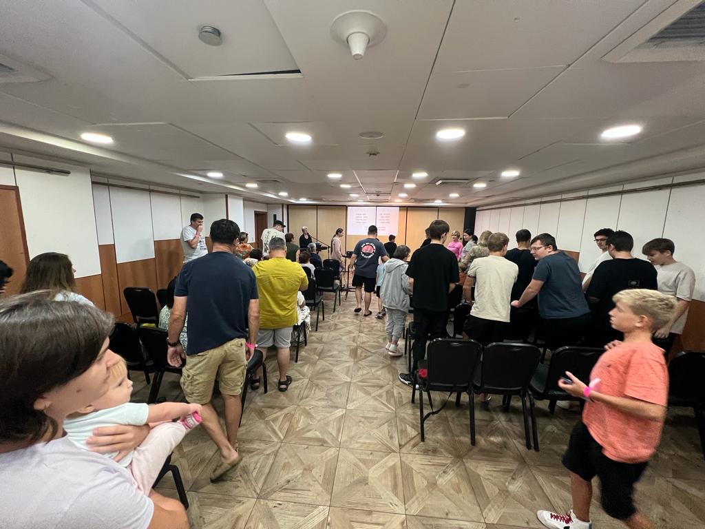 We left the Dead Sea hotel yesterday. It was a great time with 62 people from Ashkelon. It was families with kids and it was such a blessing to see how happy they were, to be away from the sirens and running to bomb shelters.  There were believers and nonbelievers in the group, and our staff have relationships with most of them. Some of the people from the group came to faith through our ministry to Olim (new immigrants).  Every morning and evening we met together for worship (Luda did a wonderful job), prayers, and study from the Bible. I spoke about how we can trust God in a difficult time. We had great discussions and time together. On Saturday, I invited a magician, who gave an excellent performance for kids and adults.  Everyone was thankful to be away from the heavy rocket fire.  A rocket even landed near one family’s house!