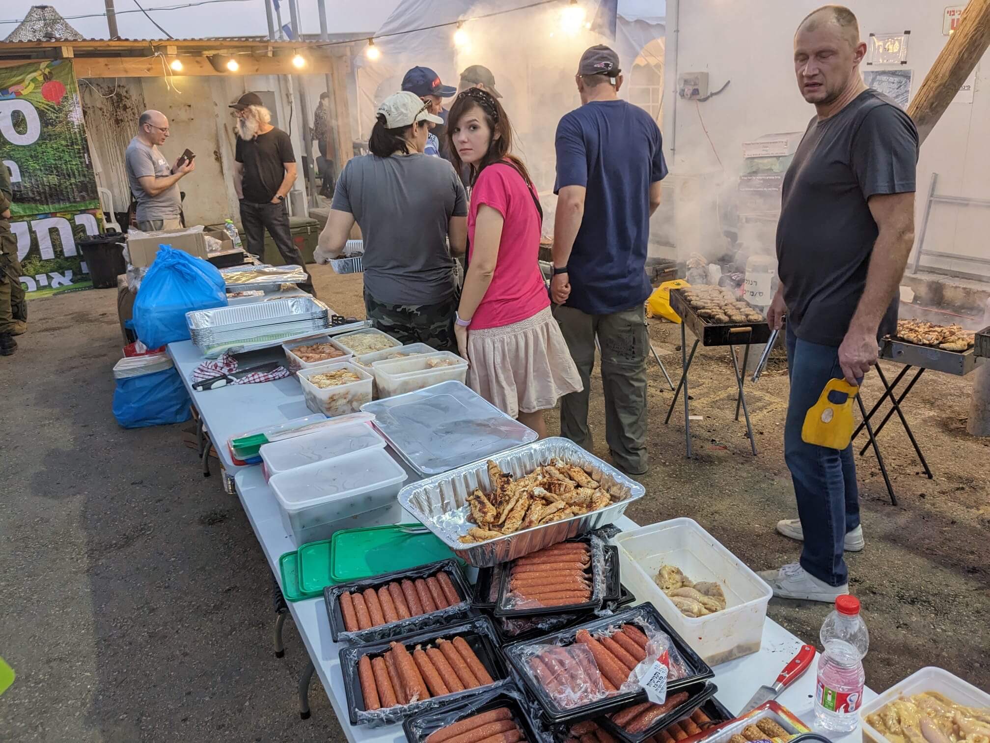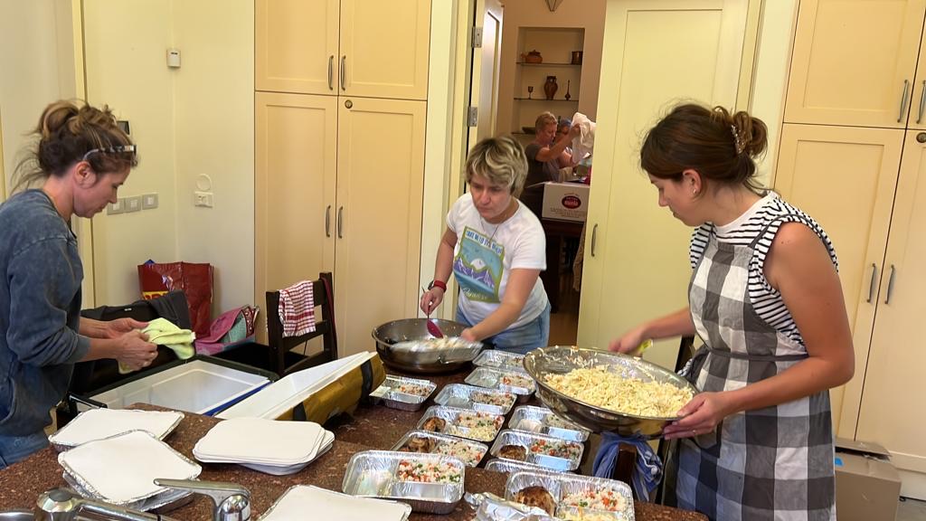 Heute planten wir, Lebensmittel zu kochen und in Paketen an 120 Holocaust-Überlebende aus Ofakim zu verteilen. Wir erhielten eine Anfrage von einer lokalen Gemeinde, 70 warme Mahlzeiten in Ashkelon für die Menschen in Tierheimen und für ältere Menschen bereitzustellen. Sie haben oft keine Zeit, zwischen dem Laufen zu den Luftschutzbunkern eine richtige Mahlzeit zu kochen. Zusätzlich zu den 120 Mahlzeiten, die wir geplant hatten, fügten wir weitere 70 Mahlzeiten hinzu, um sie in Ashkelon zu verteilen.