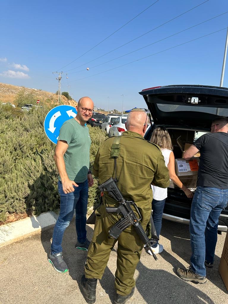 Als wir uns der Grenze näherten, wurde die Atmosphäre immer angespannter. Die Soldaten, viele von ihnen sehr jung, hatten ernste Gesichter. Wir sahen zahlreiche Panzer und Polizisten in Kampffahrzeugen. Als wir den vorgesehenen Ort erreichten, wurden wir mit einem Offizier verbunden. Soldaten aus den Stützpunkten kamen heraus, um die Gegenstände abzuholen. Sie waren sehr erfreut, und wir übermittelten, dass christliche Freunde Israels beten und den jüdischen Staat in dieser schwierigen Zeit segnen. Einige Soldaten erzählten von ihren Kindern und Ehefrauen in der Heimat. Die Reise war anstrengend, aber wir sind dankbar für die Möglichkeit, unserem Volk in dieser schwierigen Zeit zu dienen. Liebe Freunde, wir danken Ihnen für Ihre Liebe und Unterstützung.